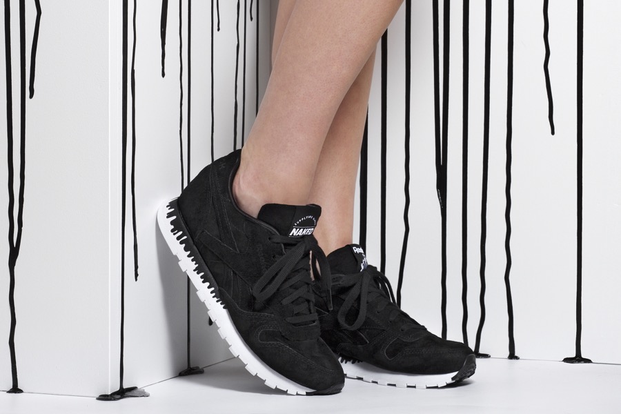 hier geht es zu unserem Bericht). Nun haben die Dänen gleich mal nachgelegt. Farblich spielt sich bei ihrer Collab mit Reebok alles etwas dezenter ab. Statt leuchtender Farben erhielt der Classic Leather „Drip“ ein Schwarz-Weiß-Dress. Der Name ihrer Collab leitet sich von der mit einem schwarzen „Tropfen-Effekt“ gestalteten Midsole ab – ein simples, aber effektives grafisches Element. Das Upper aus schwarzem Premium Nubuck macht ebenfalls einen starken Eindruck. Naked empfiehlt, den „Drip“ eine halbe Nummer kleine zu bestellen. Diesem Urteil schließen wir uns an. Voraussichtlich noch am Wochenende werden wir den Naked x Reebok Classic Lthr „Drip“ in einem Blogpost genauer vorstellen. Naked wird die Collab am Samstag um 18 Uhr im Anschluss an ein kleines Instore-Event auch
